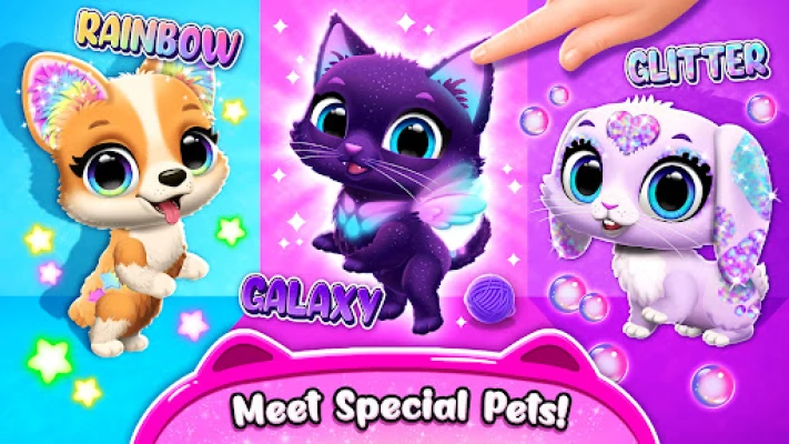 Oplev en verden af søde virtuelle kæledyr! Adopter en familie af kaniner, hvalpe og katte, og se dem vokse. Indret deres hjem og nyd sjove minispil som puslespil, eventyr, madlavning og udklædning. Det perfekte sted for dyreelskere.