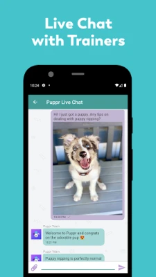 For dem, der søger yderligere støtte og dybere indsigt, tilbyder Puppr Premium direkte adgang til et team af verdensklasse trænere via live chat. Vores eksperter står klar til at besvare alle dine træningsspørgsmål, uanset om det drejer sig om at byde en ny hvalp velkommen, håndtere uønsket adfærd som hvalpebid, at hoppe op eller gøen, eller specifikke udfordringer som snoretræning, renlighedstræning eller separationsangst. Du kan trygt stille spørgsmål om alt fra tricktræning til generel adfærdsregulering. Mens du træner, kan du følge din hunds fremskridt, samle motiverende udmærkelser og se din hund mestre nye færdigheder trin for trin.