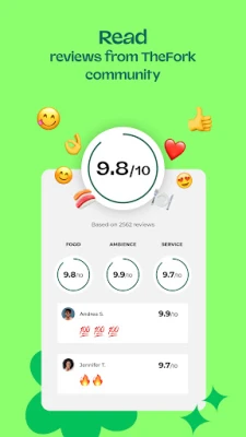 Forestil dig at den perfekte restaurantoplevelse kun er få tryk væk – uanset om du er i pulserende Paris, solbeskinnede København eller smukke Rom. TheFork er din uundværlige partner i kulinariske eventyr, der forenkler processen med at finde og reservere bord på tværs af Frankrig, Spanien, Italien, Storbritannien, Holland, Belgien, Schweiz, Portugal, Danmark og Sverige. Vi fjerner besværet med at ringe rundt og sikrer, at du hurtigt og ubesværet kan fordybe dig i et 'mmm'-øjeblik af ren gastronomisk nydelse, lige når det passer dig.