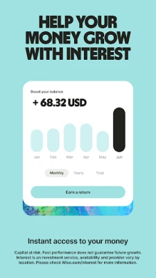 Hold op til 40 forskellige valutaer på din Wise-konto uden månedlige eller vedligeholdelsesgebyrer i de fleste tilfælde. Konverter øjeblikkeligt mellem valutaer til den reelle vekselkurs mod et minimalt gebyr, eller indstil automatiske konverteringer ved specifikke kurser med Rate Alerts. For dem, der ønsker at få deres penge til at arbejde, tilbyder Wise også investeringsmuligheder som 'Interest' eller 'Stocks' med få tryk, dog med den vigtige bemærkning, at kapital er underlagt risiko, og vækst ikke er garanteret. Disse muligheder er i øjeblikket tilgængelige i Storbritannien, Singapore og flere EØS-lande. Virksomheder kan også drage fordel af en global forretningskonto, der forenkler faktura- og regningsbetalinger til favorable vekselkurser og forbinder med populære platforme som Amazon, Stripe og Xero. Wise er reguleret af lokale myndigheder verden over for din sikkerhed og ro i sindet.